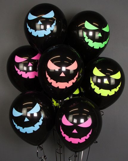 Одним из основных элементов декора на Хэллоуин являются шары в виде нарисованных на них ужасающих лиц, черепов, пауков и других монстров. Также популярны шары с изображением призраков, вампиров, зомби и других существ, связанных с мистикой и ужасами.